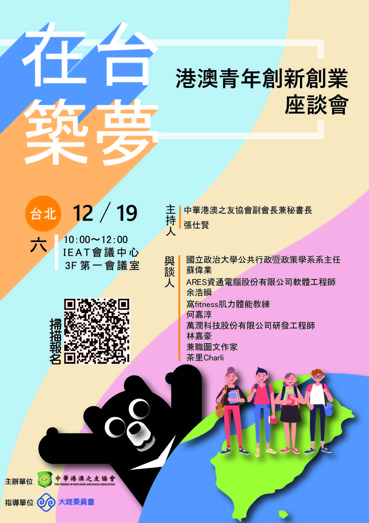 想知道畢業後如何留在臺灣就業或創業嗎?到底須注意哪些規定?除有來自業界就業心得及創業環境實例分析,還有優秀港澳青年帶來第一手的經驗分享及寶島生活甘苦談。歡迎有興趣的同學踴躍參加,千萬別錯過了!快掃描圖片中QRcode報名!