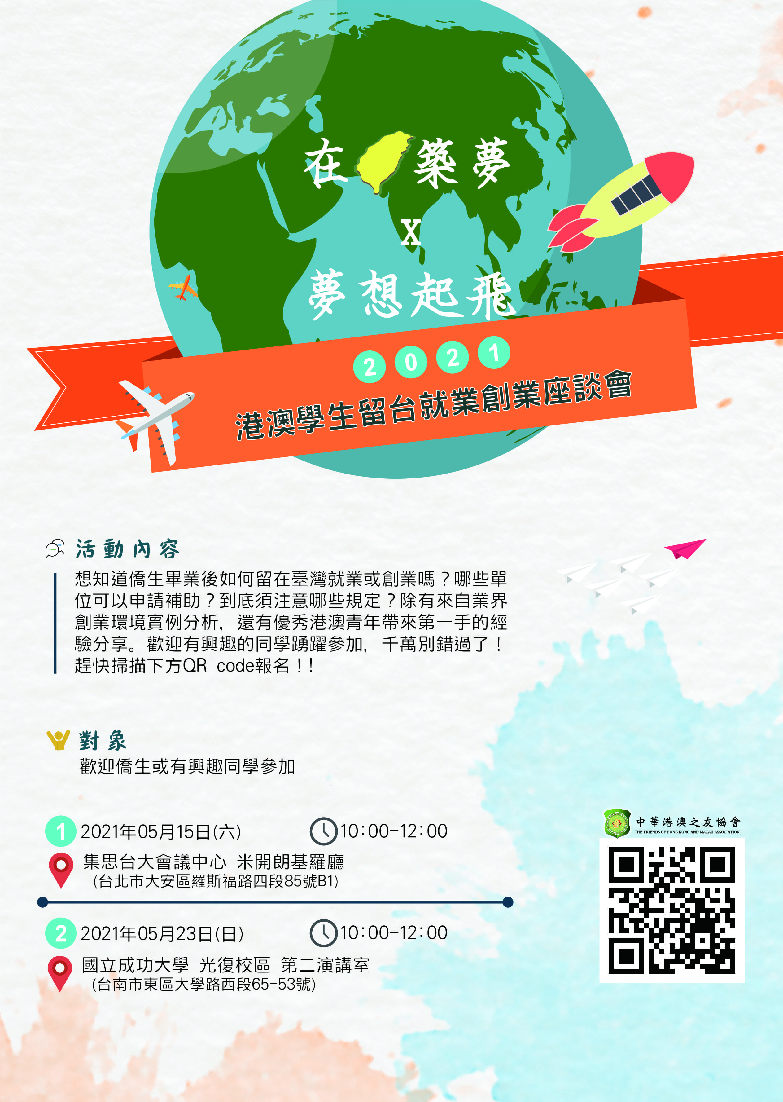 想知道僑生畢業後如何留在臺灣就業或創業嗎?哪些單位可以申請補助?到底須注意哪些規定?除有來自業界創業環境實例分析,還有優秀港澳青年帶來第一手的經驗分享。歡迎有興趣的同學踴躍參加,千萬別錯過了!趕快點選下方報名連結報名!