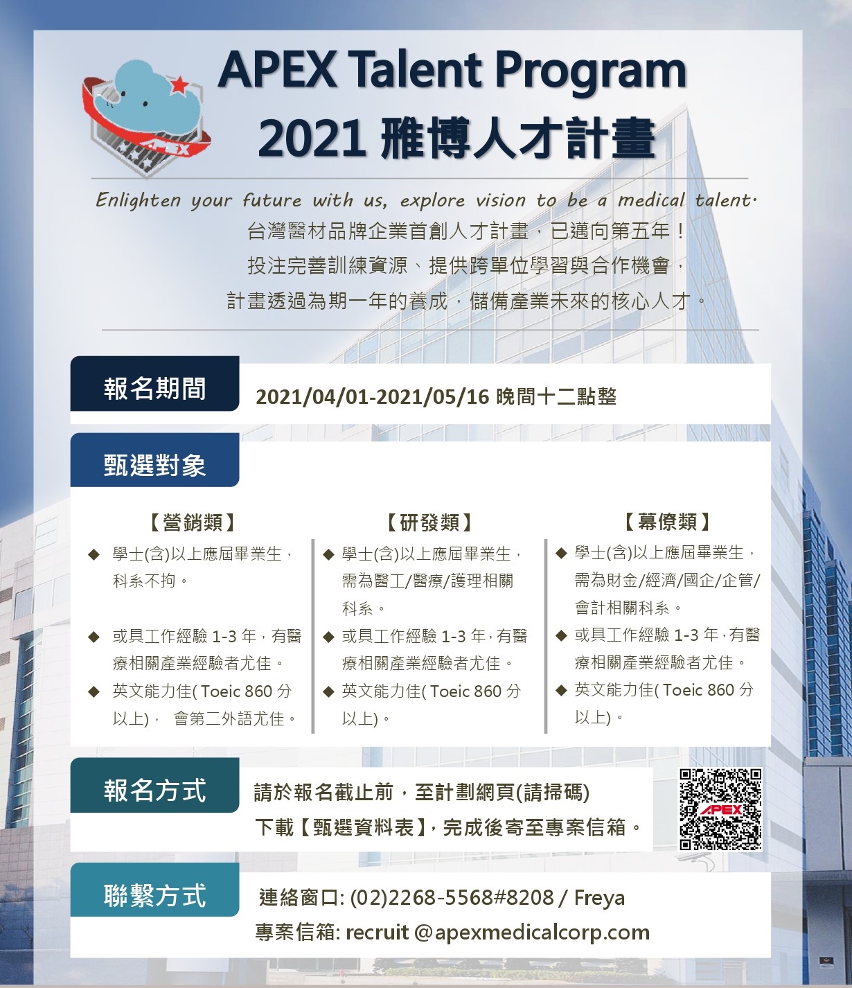[徵才]雃博醫材 - 2021 雃博人才計畫 (APEX Talent Program)