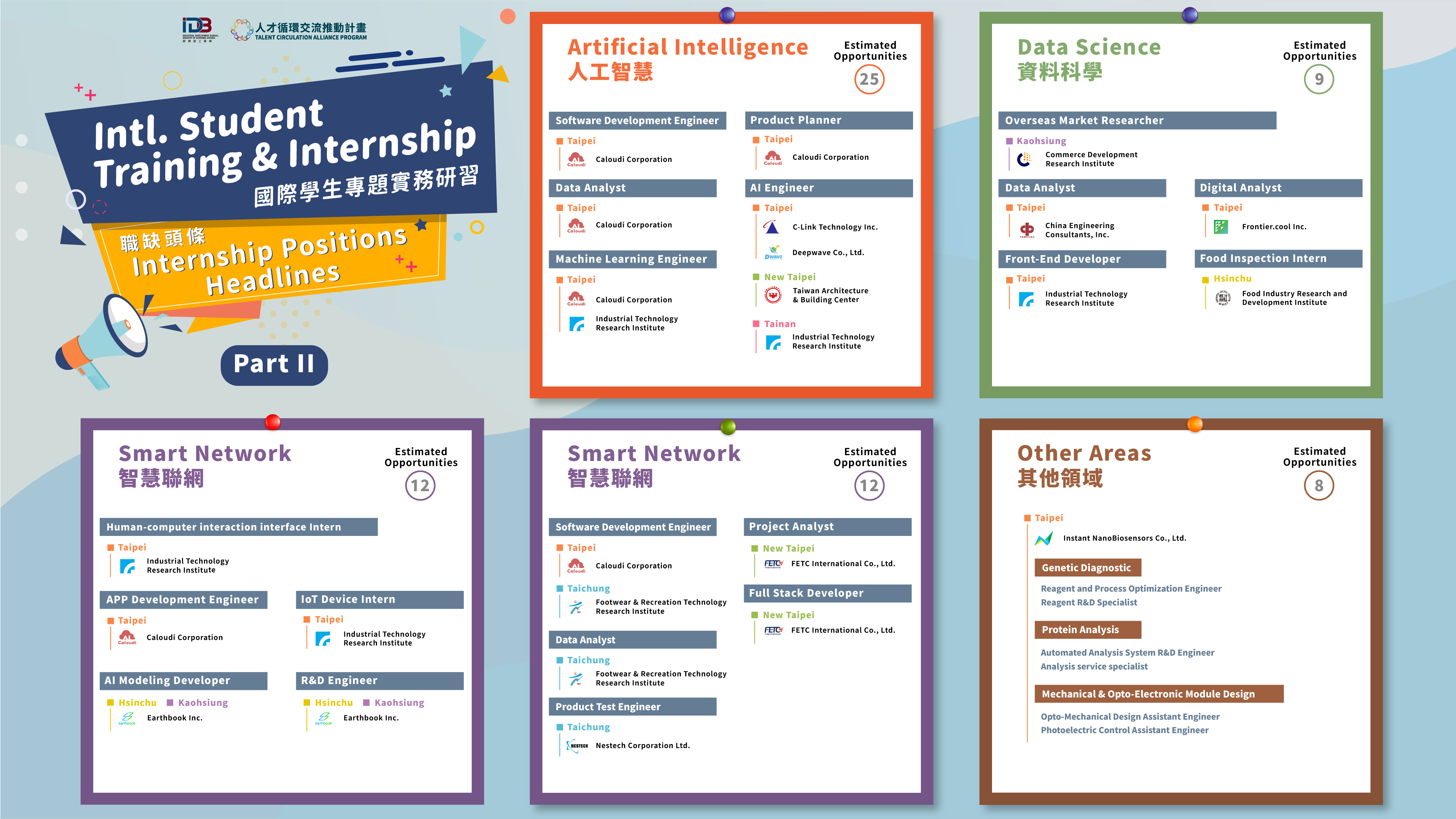 本計畫於去年開始啟動「國際學生實務研習計畫」(TCA International Student Training & Internship),提供在臺就讀之國際學生進入臺灣產業從事6個月的專題實務研習,包含實務訓練、實習、產業訓練等全方面的研習機會。