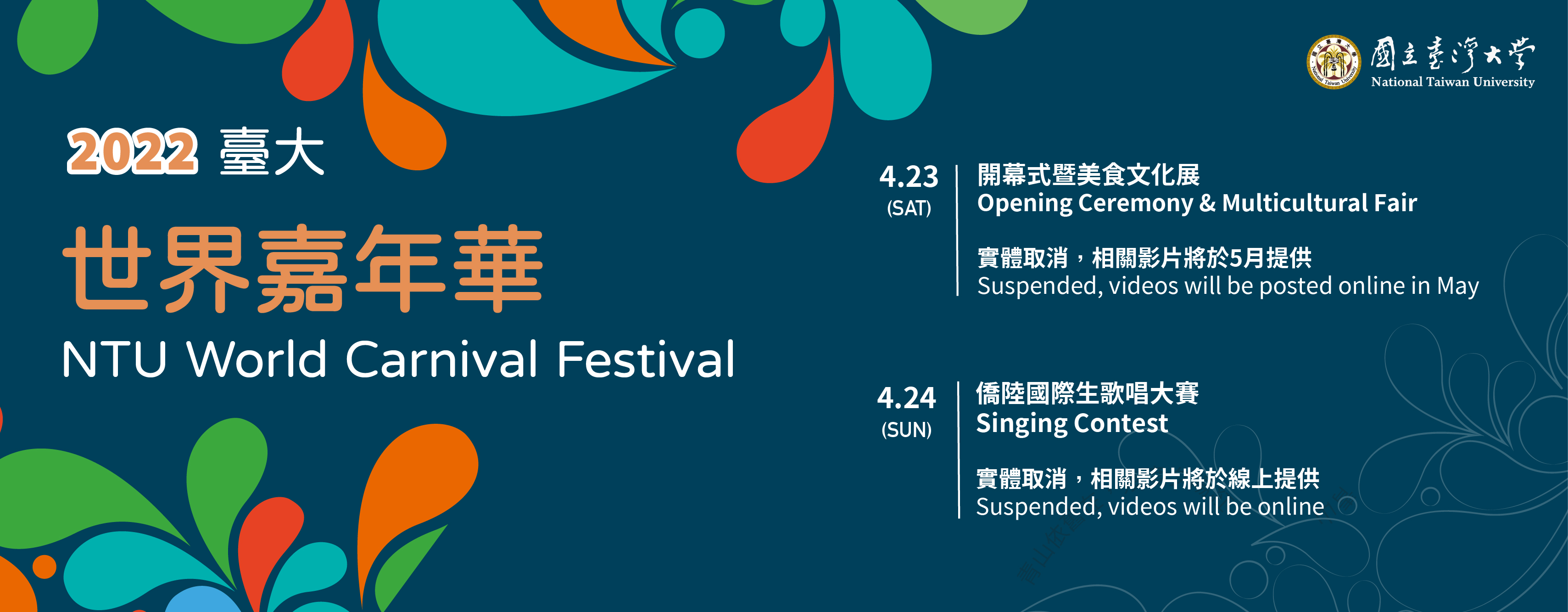 【2022臺大世界嘉年華】實體活動取消通知 On-site Activity Suspension Announcement