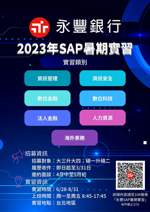 【徵才資訊】2023永豐銀行SAP暑期實習計畫(Sinopac Apprentice Program )-越南人才